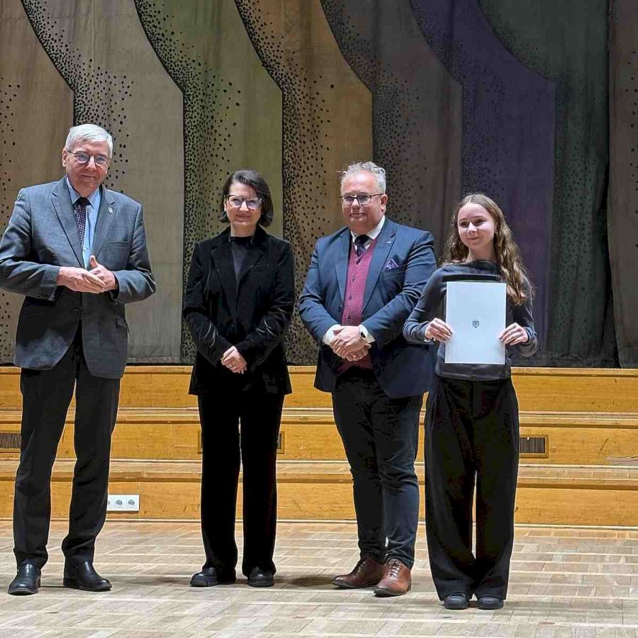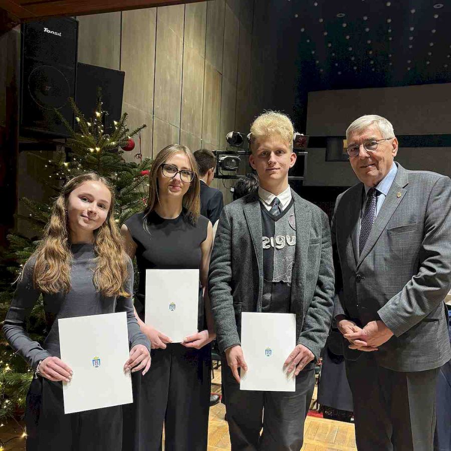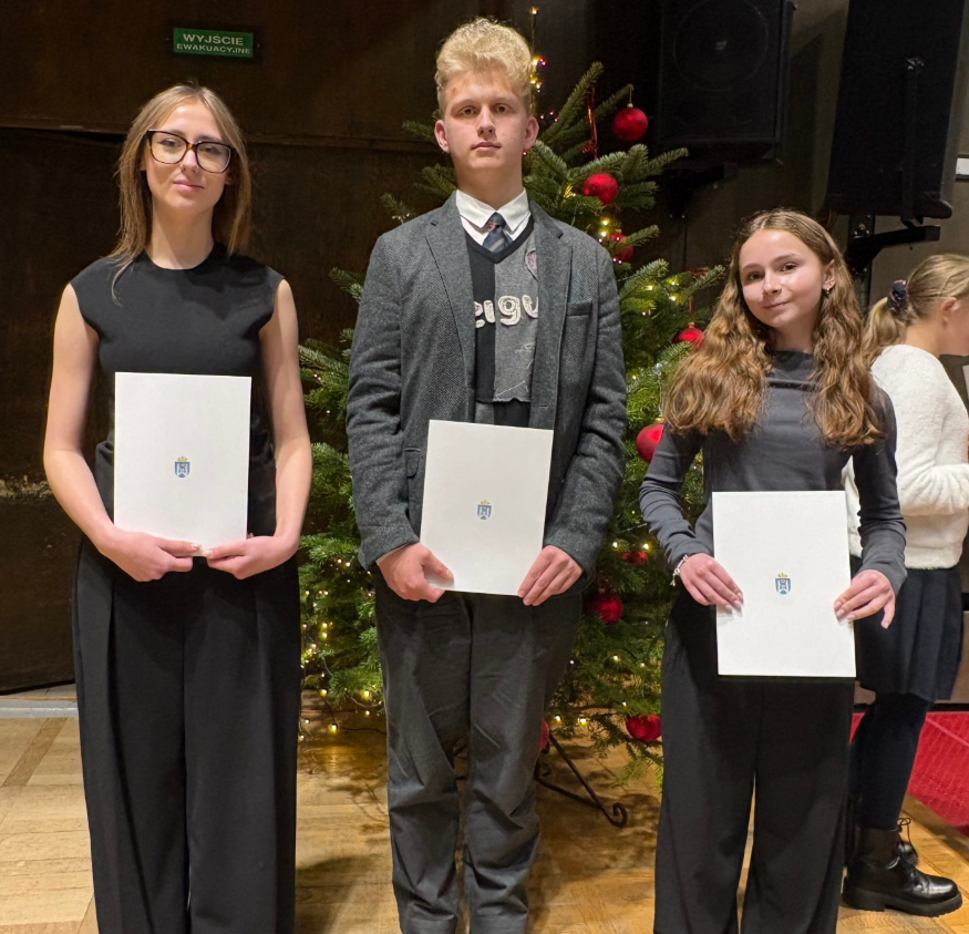 15 grudnia 2025 odbyła się uroczystość przyznania Nagród Miasta Poznania. Na zdjęciu widzimy naszą uzdolnioną Marcinkową trójkę Martynę Kruk, Nataszę Chadyniak i Jędrzeja Nowaka, a na kolejnym zdjęciu Janka Maciejewskiego.